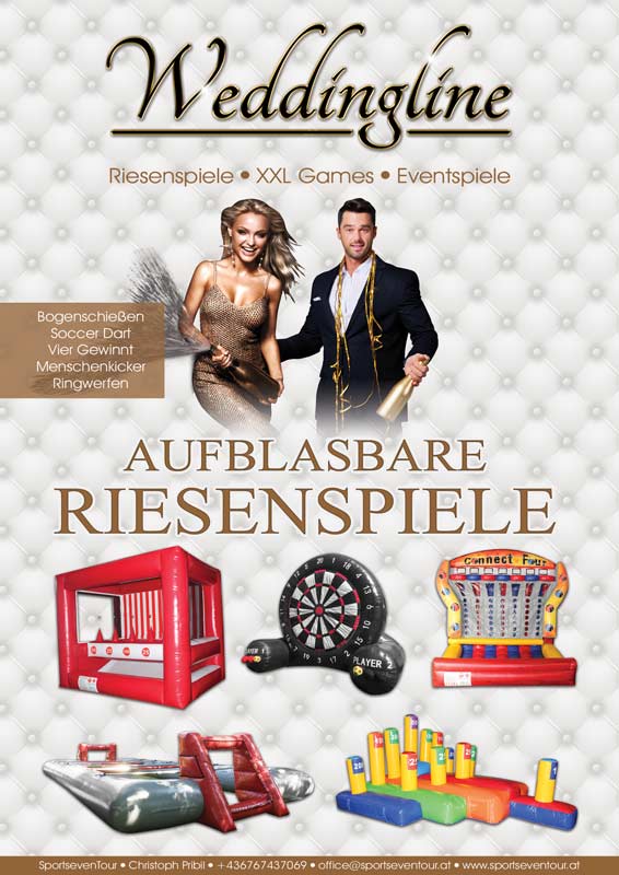 Über unsere Hochzeitsspiele: Wir durften bereits einige Hochzeitsspiele für Euch anfertigen. Davor gab es Hüpfburg und andere Eventmodule. Dennoch haben wir diese Spiele zusätzlich entwickelt und verfeinert. Folglich sind Sie nun bei uns mietbar und warten auf Euch. Ebenso stehen diese über unseren Lieferservice mit Aufbau und Abbau zur Verfügung. Darüber hinaus aber auch für Selbstabholer und Kooperationspartner. Dazu möchten wir Euch auch die anderen Konzepte kurz vorstellen, da wir eine große Auswahl an Spielen für Euch haben. Demzufolge stehen auch unsere Riesenspiele und aufblasbaren Spiele für den Verleih an Euch bereit. Ansonsten wünschen wir Euch viele Spaß mit unseren Hochzeitsspielen.